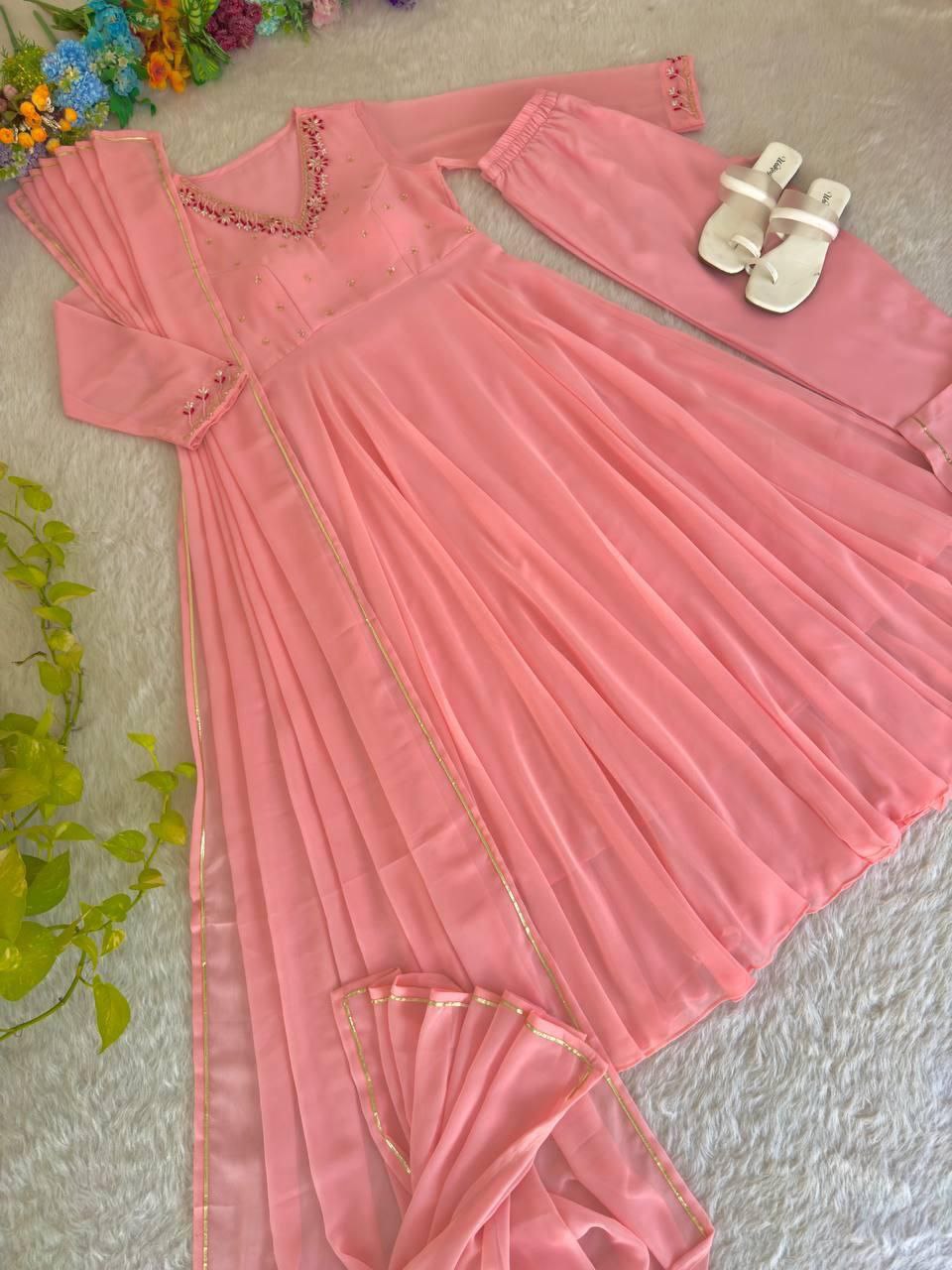 Elegant Handwork Fox Georgette Party Gown Set with Dupatta