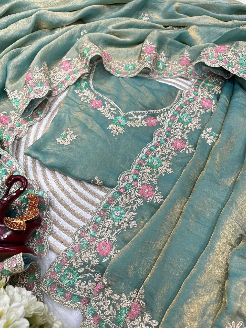 Exclusive Multicolour Sequin Embroidered Space Silk Saree Set